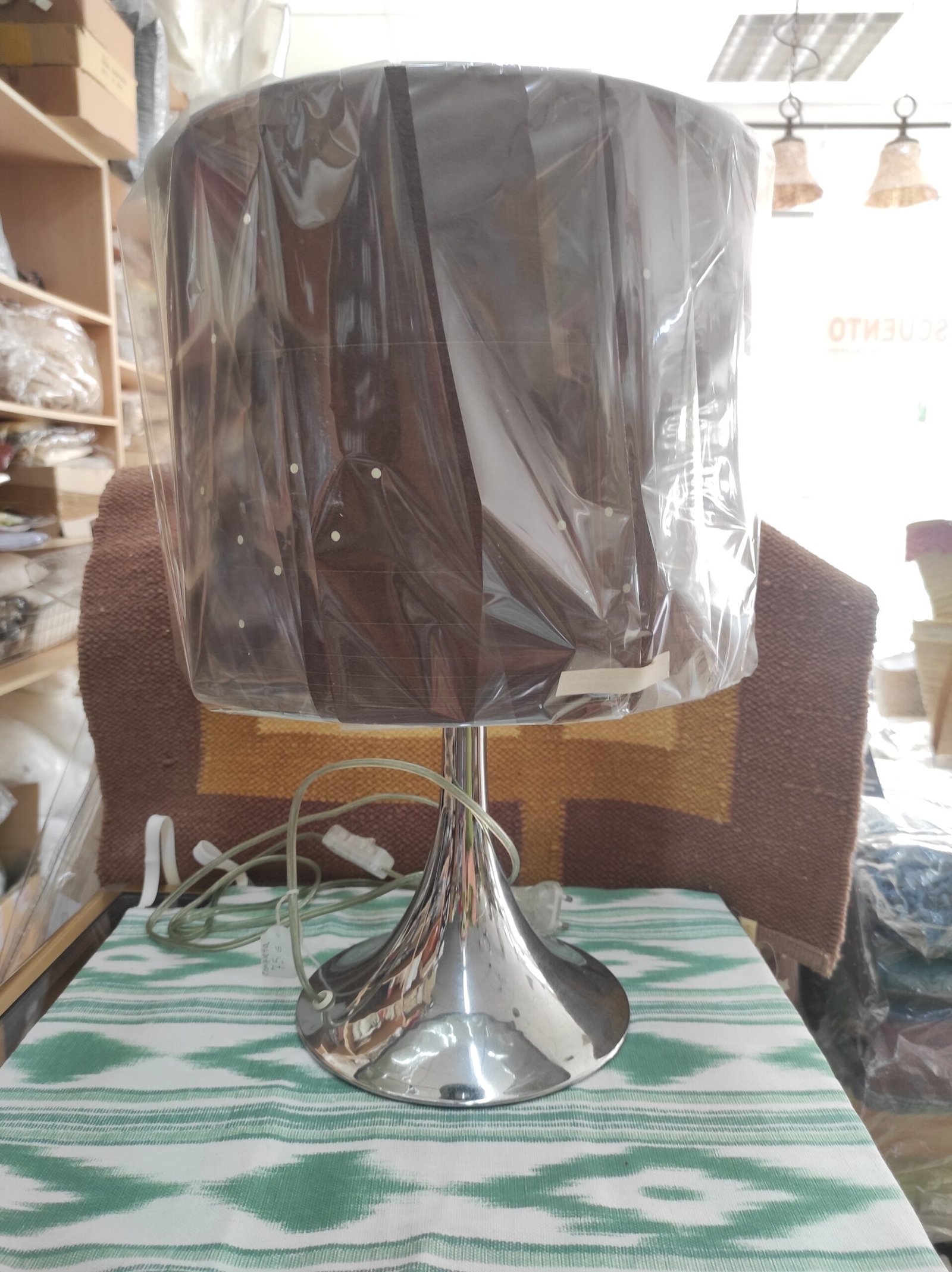 Lampara mesa metal y tulipa marrón cantidad